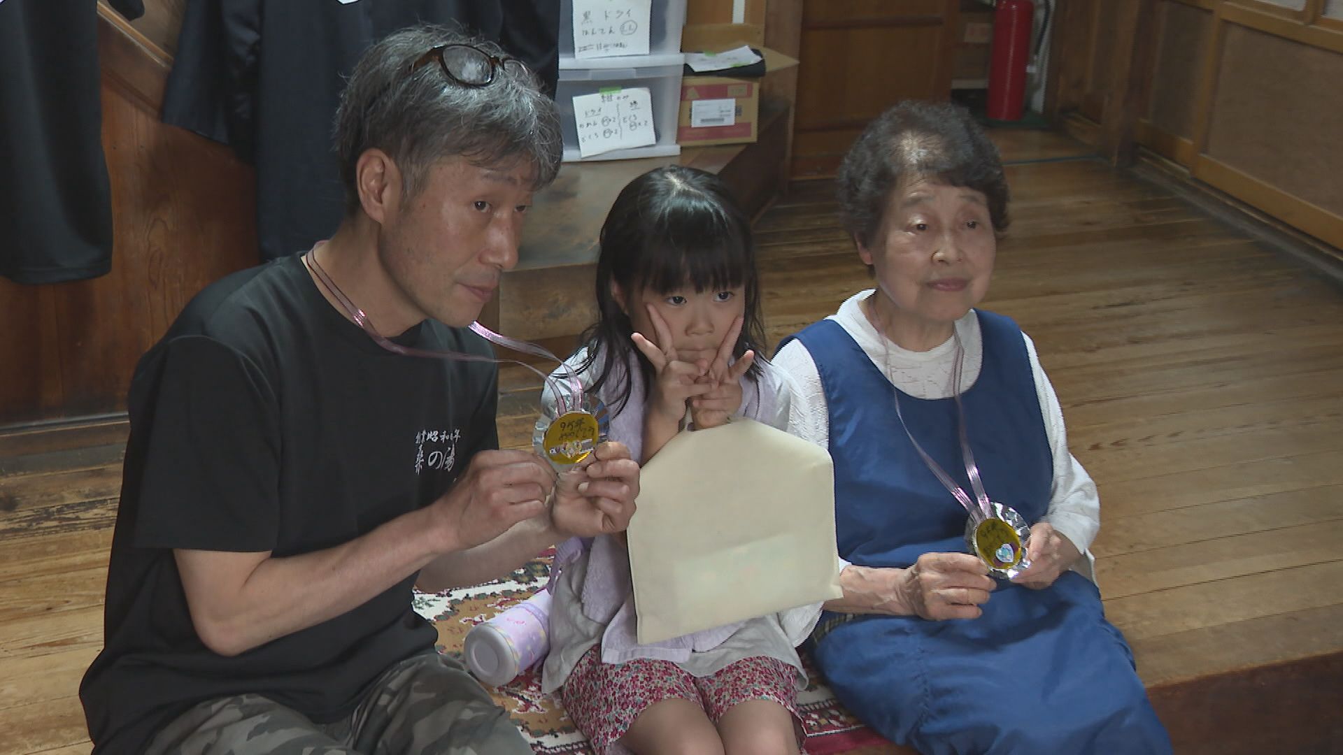 常連の女の子から手作りの金メダルと手紙をもらう桑沢さん