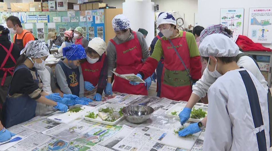 長野県飯田市の天龍川総合学習館「かわらんべ」で11日、「七草がゆを味わう会」が開かれました。園児や小学生など8家族22人が参加し、近くの畑でナズナとハコベラを摘みました。