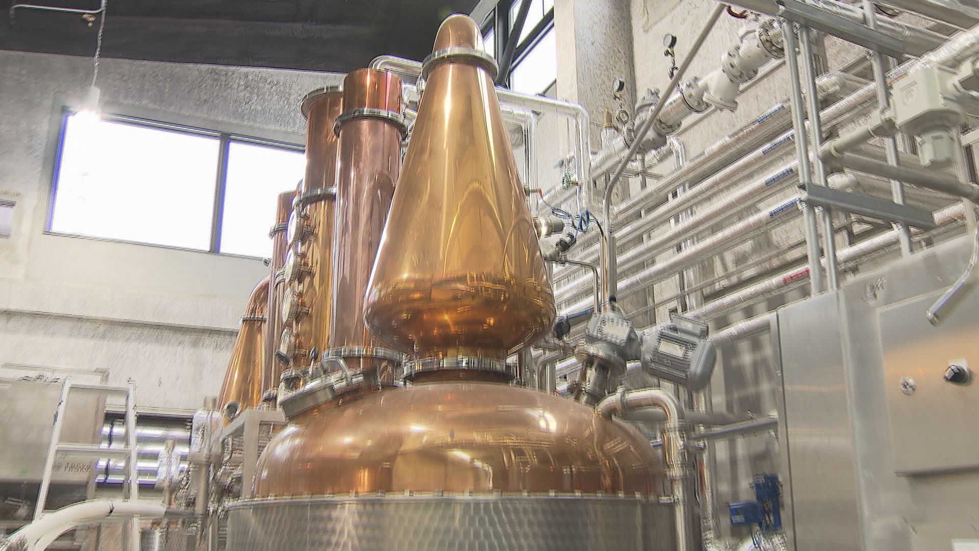 「蒸留機から出ているジンの度数は82%あります。すごく高い、飲める状況じゃない、このあと加水します」