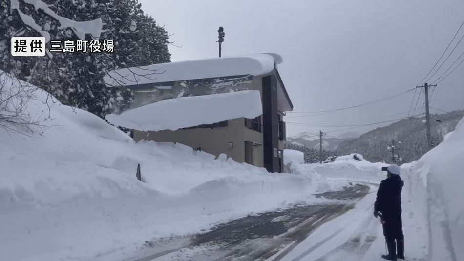 集会所から滑り落ちる雪の塊。2月9日に福島県三島町で撮影された落雪の瞬間です。幸い、下に人はおらずけが人はいませんでした。撮影した人は「落ちる前にバリバリ、ミシミシという大きな音がした」と話しています。