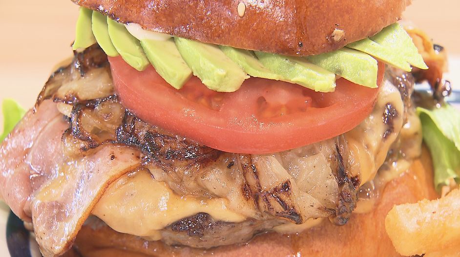 「奥さんのところの食パンをベースにバンズ作っているんですけど、パティ結構重たいので、それに負けないように焦げ目をつけてちょっと表面はカリっとさせているのが特徴」