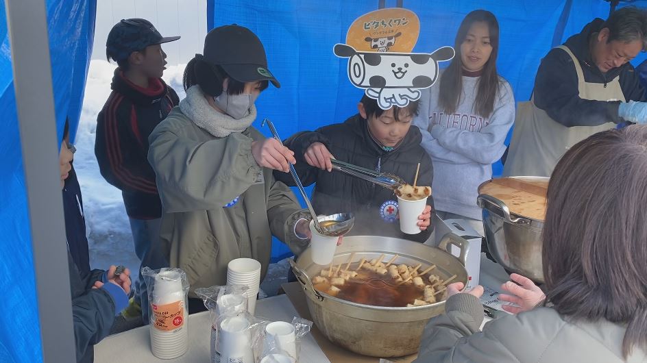 この日は商店街連合会の協力でビタミンちくわも入ったおでんも販売。こちらの売り上げも被災地支援に充てられます。