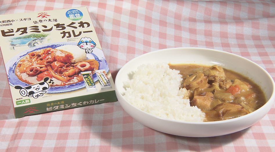 「スギヨ」と大町西小学校の4年生が開発したレトルトの試作品「ビタちくカレー」