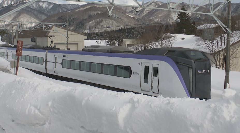 線路脇の斜面から落雪したと見られ、列車は手前で停止して約100人の乗員・乗客にけがはありませんでした。