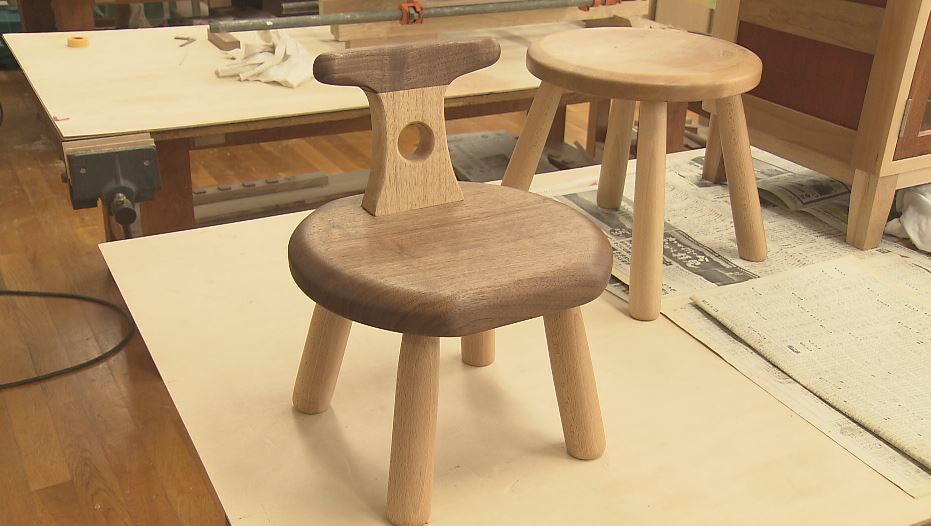 宮田正彦さんは小さな椅子を製作中