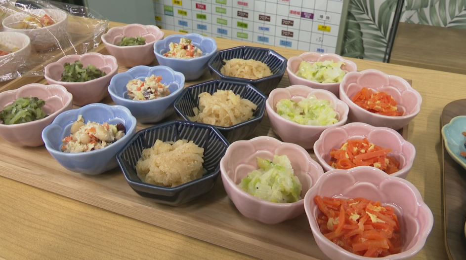 この日は「おばんざいづくし」と銘打って、「ひじきの煮物」など30種類ほどの総菜が選び放題でした。