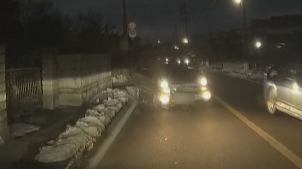 歩道に乗り上げた間に後続車にも追い抜かれた車。なぜはみ出したのでしょうか。