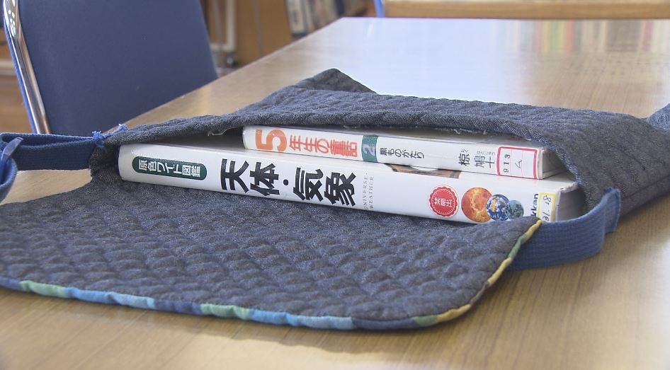 「図書袋です。借りた本をこの中に入れて持ち帰ったり」