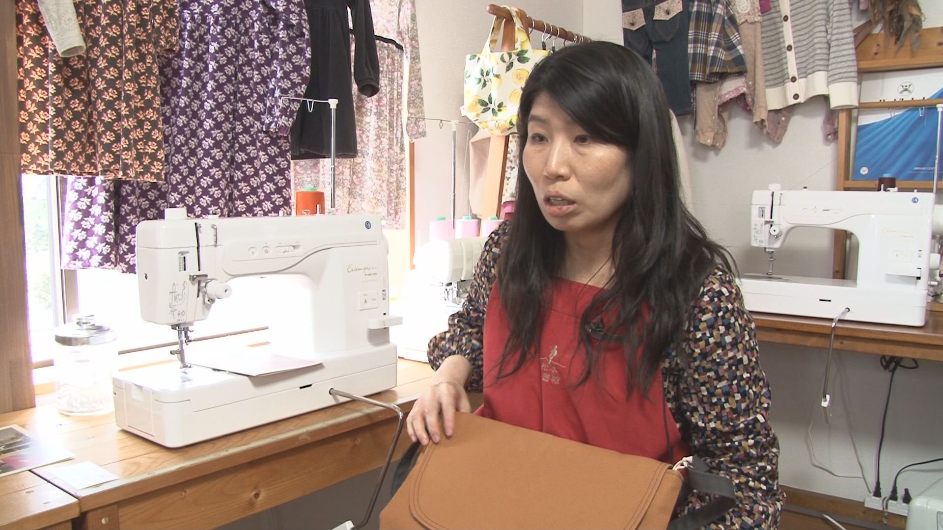 松本市内で洋裁教室を営む田川恵理子さん。4年前に図書袋専門ブランド「松本図書鞄」を立ち上げ、オリジナル商品の販売を始めました。