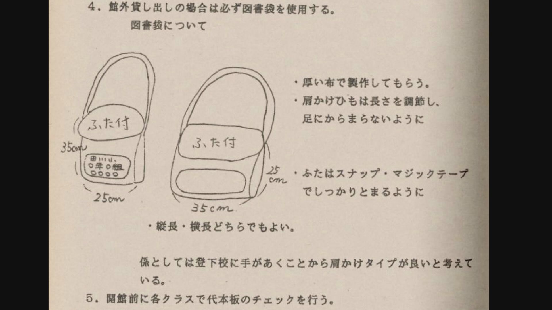 図書袋の形状も時代とともに変化してきました。