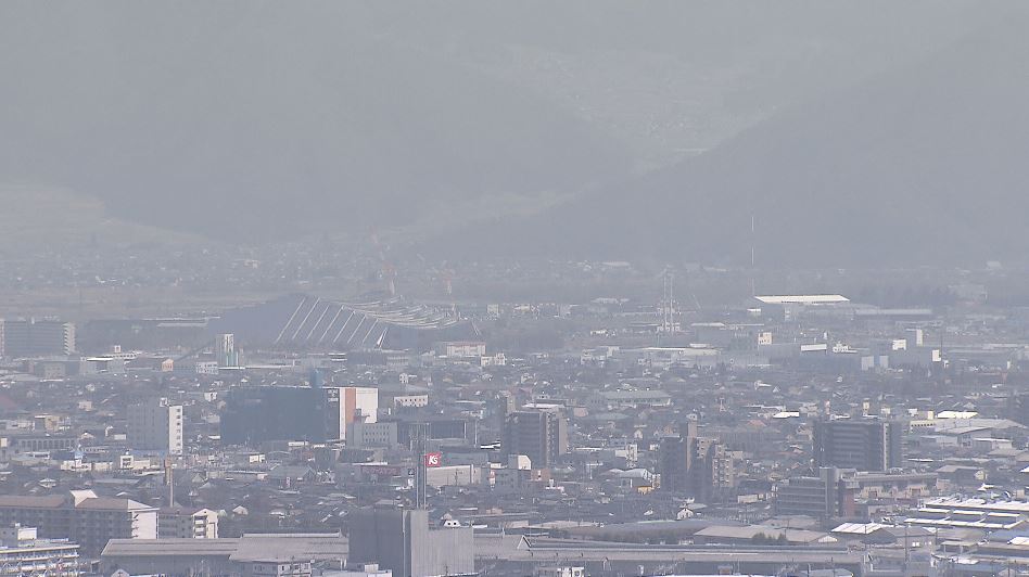 「長野市街地を見ると、かなり霞んでいて奥の方が見えにくくなっています」
