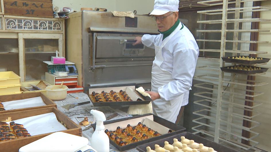 隣で作業をするのは妻・いづみさん(80)です。「鳥」の表面に手際よく黄身を塗り、オーブンで焼き上げると完成です。