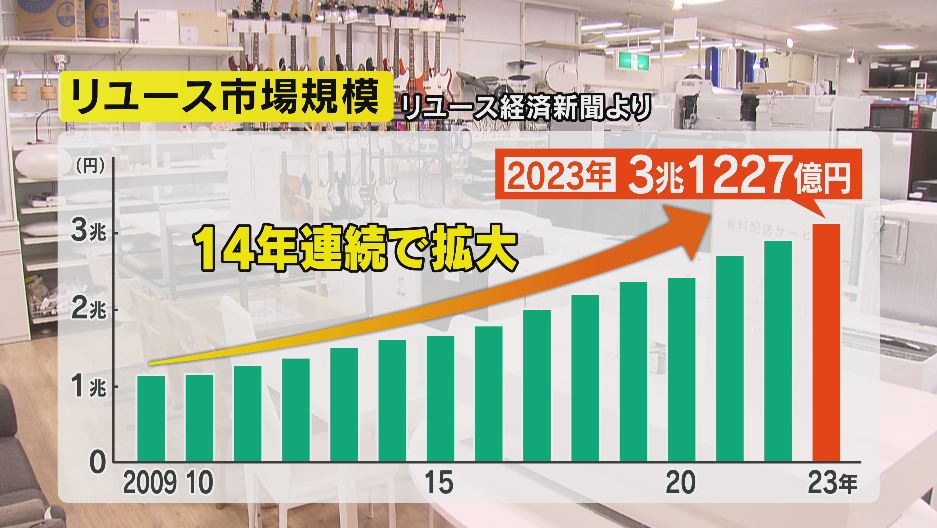 「リユース経済新聞」によりますと、2023年の市場規模は3兆1227億円。2009年以降、14年連続で拡大を続けています。