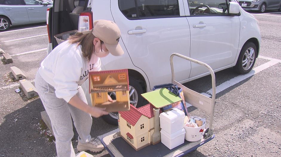 長野市の川村美穂さん(32)。動物の人形のおもちゃなど89点を持ち込みました。