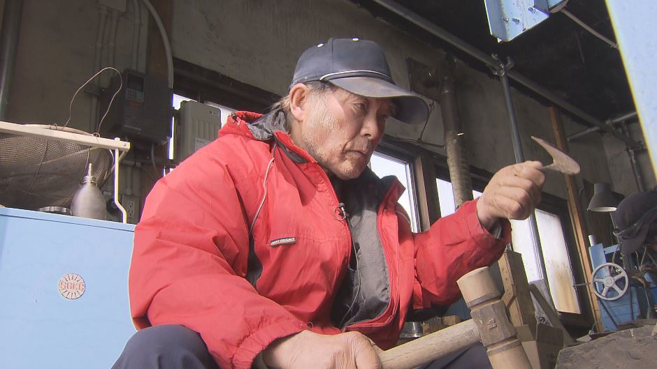 信濃町の打刃物職人は、40年ほど前は60人以上いましたが、今は石田さんを含め5人のみ。弟子は入って来ず、74歳の石田さんが最年少です。