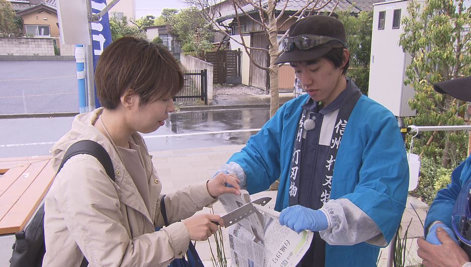 「知らないって人が多い、打刃物ってあること自体。われわれの鎌はブランドになっているけど、知らないというのはさみしい。(大木島さん)本人も(客の)目の前で自分がやったのを見てもらってよかった。だんだん腕も上がるし、期待しています」