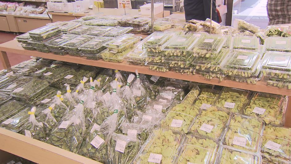 今年の冬は雪が多く、生育は遅れていましたが、このところの暖かさで、一気に進んだということです。棚に並ぶと早速、多くの人が買い求めていました。