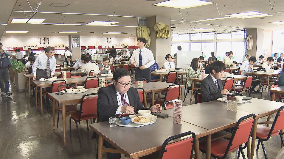 劇中には、県庁も登場します。10階の食堂は重要な舞台の一つ。この日もお気に入りのキャラクターとメニューを一緒に撮影するファンの姿がありました。