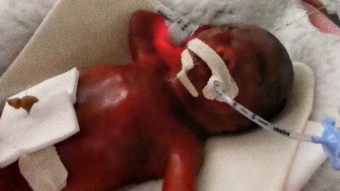 羊水が少なく、妊娠24週の緊急帝王切開でした。