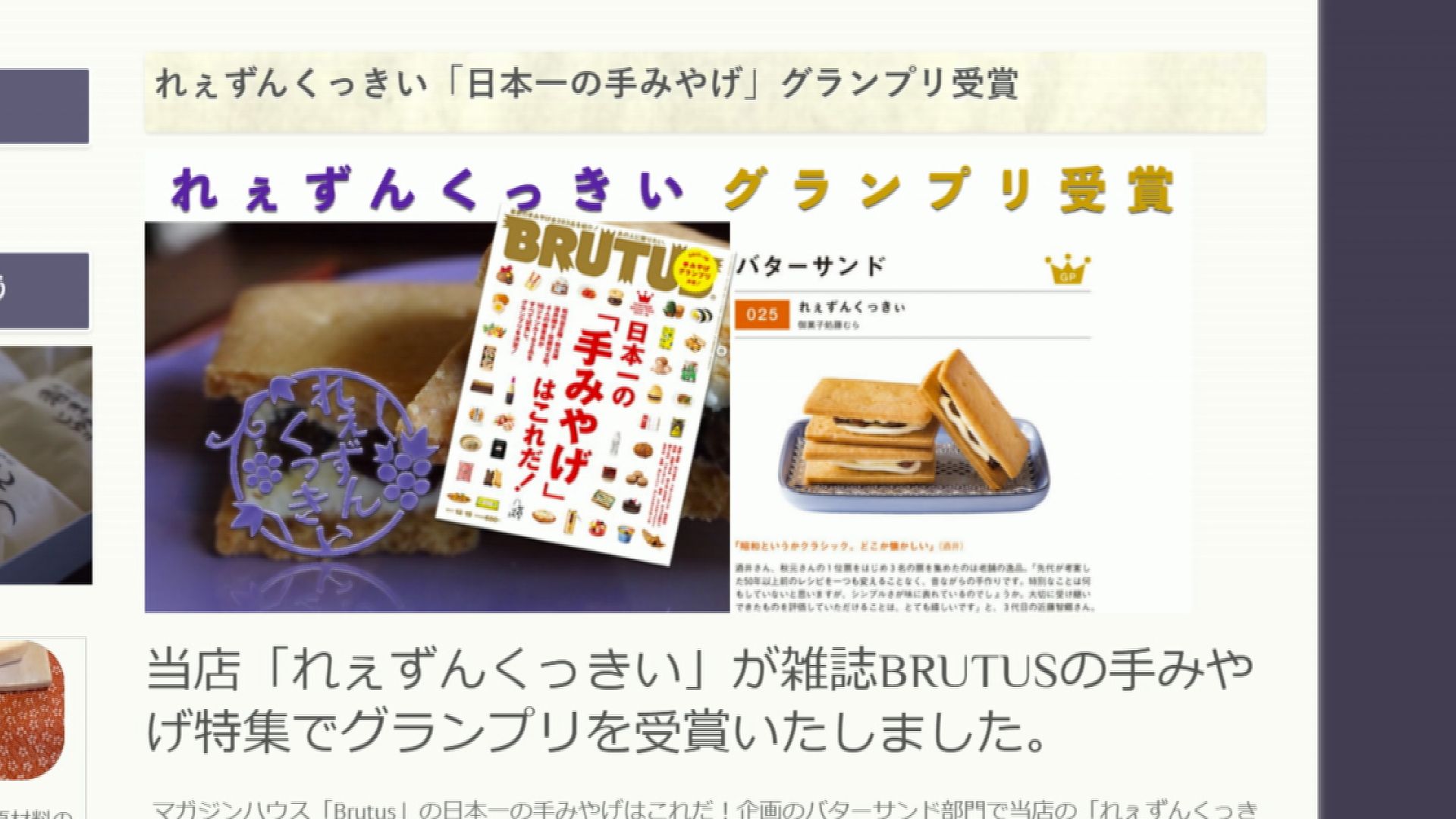 2017年、情報誌が特集した「日本一の手土産」。バターサンド部門で見事、グランプリを受賞したのです。