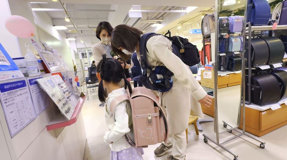 軽いランドセルを選ぶ親子