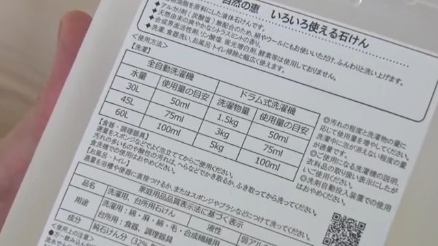 3つ目は「洗剤」の量。洗濯物や水の量に合わせ、洗剤に記載された既定の分量を入れます。