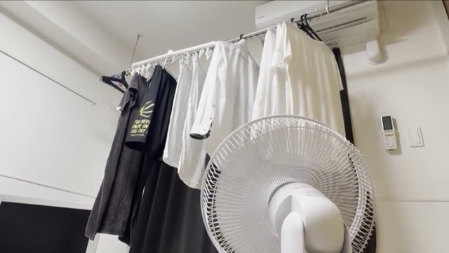 洗濯物同士の間隔を空け、扇風機などで風を送る