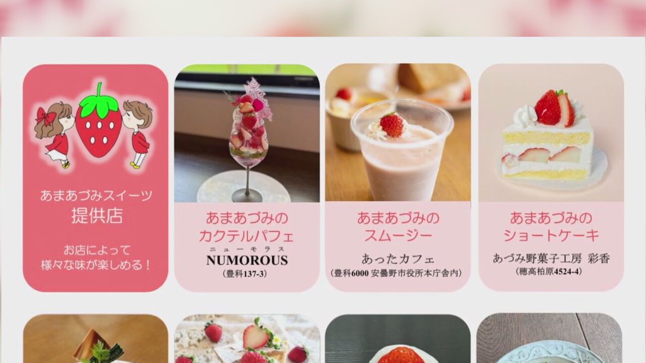 特集は旬の「夏秋イチゴ」です。長野県安曇野市生まれの新品種「あまあづみ」を使ったスイーツを地元菓子店が販売するフェアが開かれています。それぞれ工夫を凝らし「あまあづみ」をPRしています。