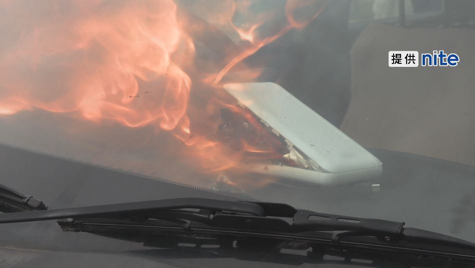 炎天下で車のダッシュボードに放置したモバイルバッテリー。徐々に膨らみ火が上がりました。