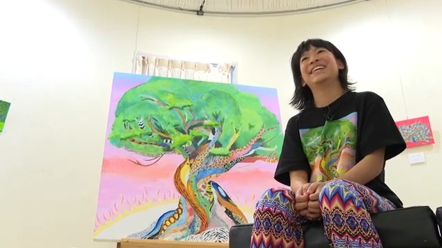 「大きいキャンバスには1本の立派な木を描きたいなと思って、そしたら(母と)一緒に思いついた。幹1本1本を動物の柄にしたらいいと思って」