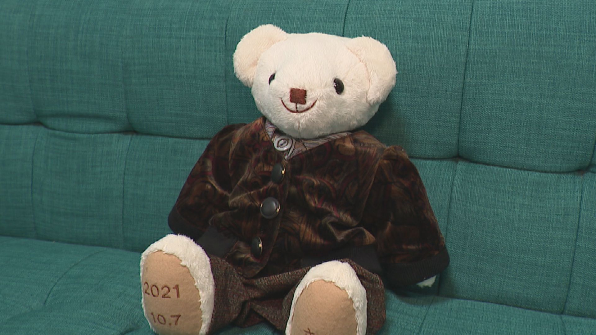 完成したベアを見た母は「本当の形見というか、母はその中で生きているのかな」と笑顔を見せます。