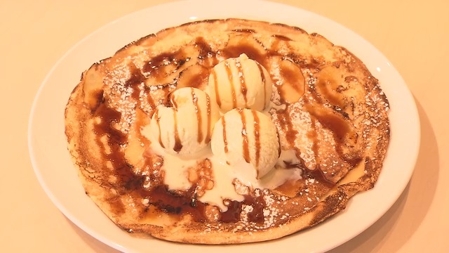 「(ドイツ)のレストランで働いていたときはパンケーキに80以上のフレーバーがあった。1日に350枚焼いていた。日本のパンケーキをよく知らないけど、なんだっけ、せんべい?ニラせんべいのようだという人はいる。僕はよく分からないけど」