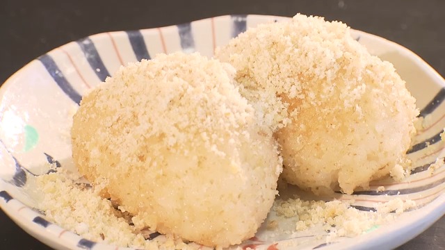 炊き立てのもち米に粉末のクルミ、塩、砂糖だけというシンプルな味付け。粗めの粉末を使うことでクルミの風味が際立つように工夫しています。