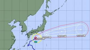 予報円の中心から半径210キロ以内では風255メートル以上の暴風域に入るおそれがあるということです。