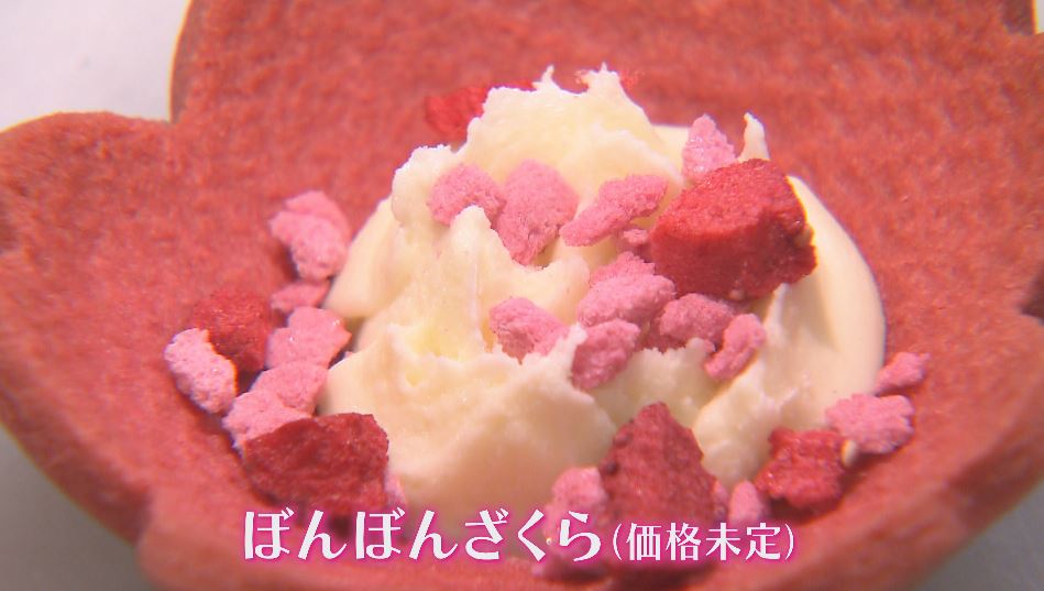 最後にフリーズドライしたイチゴと桜の花をトッピングして完成。