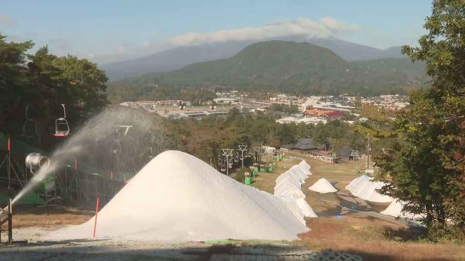 10月23日の朝、長野県内は今シーズン一番の冷え込みとなりました。軽井沢町のスキー場ではゲレンデ作りが進んでいます。