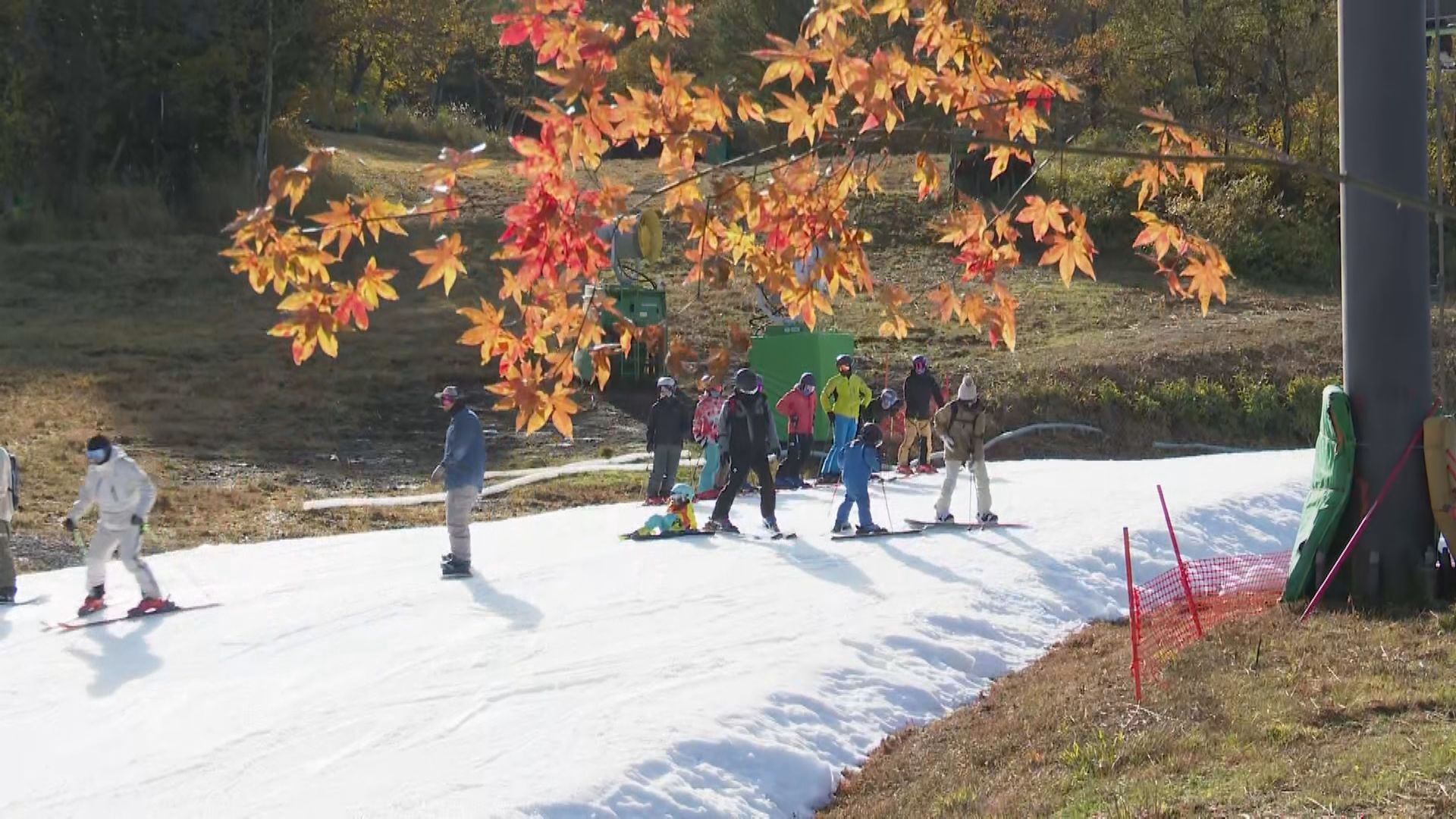 青空が広がり、紅葉が鮮やかさを増す中、浅間山を望むゲレンデではオープンを待ちわびた県内外のスキーヤーやスノーボーダーが初滑りを楽しんでいました。