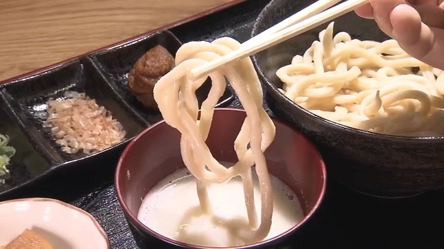 温かいうどんを、大根のおろし汁につけて―。
