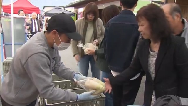 会場の一つ、直売所「あいさい」ではねずみ大根を買い求めたり、「おしぼりうどん」を食べたりする人でにぎわいました。