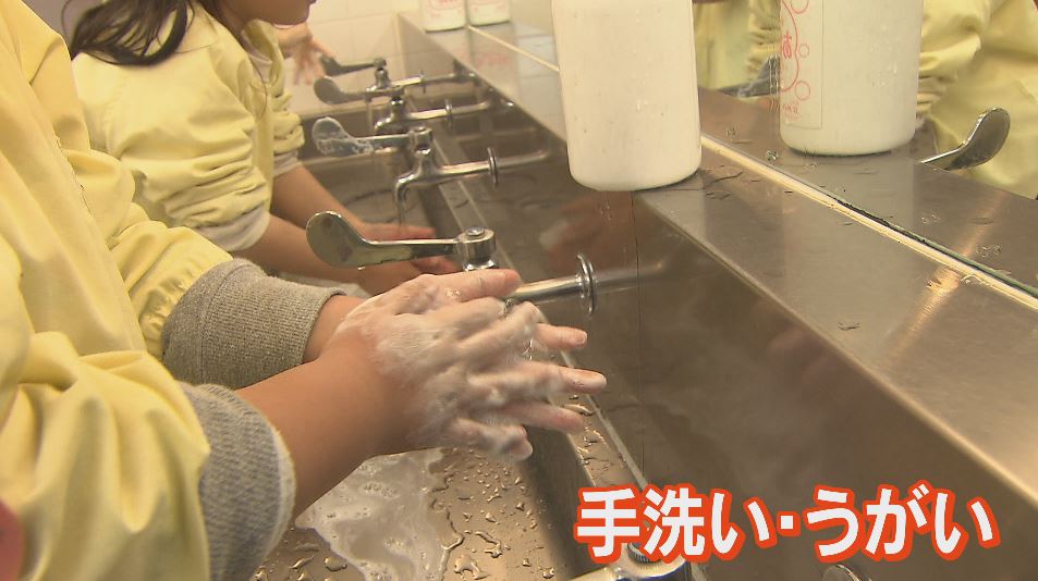 保育の現場は細心の注意を払って対策しています。千曲市の信学会さゆり幼稚園では、お弁当の時間が来ると園児たちは「手洗い・うがい」。石けんを使って丁寧に洗います。