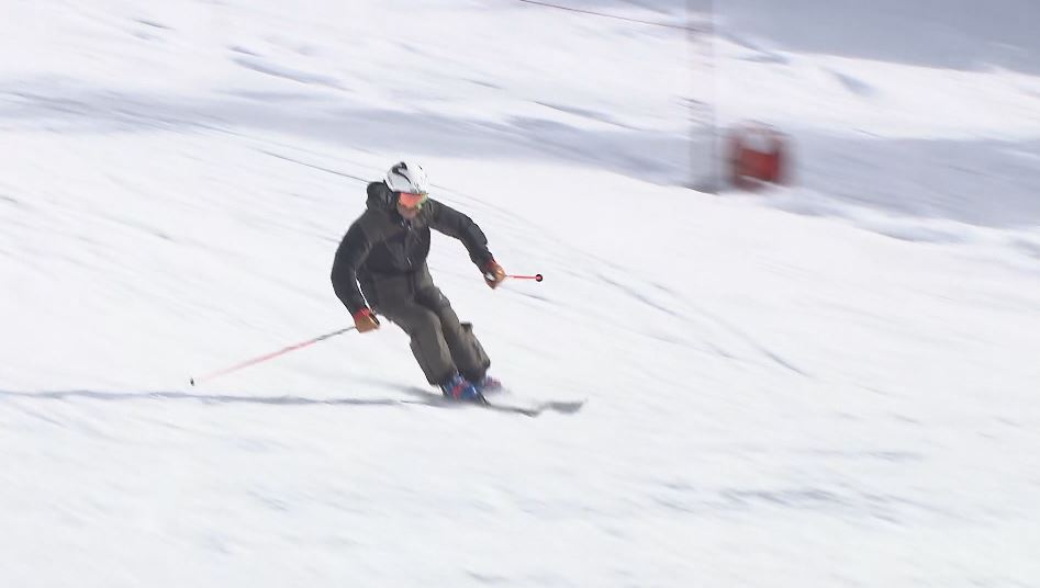 「大変お待たせしました。今は天然雪と人工降雪機が混ざっているが、しまった雪で十分、滑走には楽しい」
