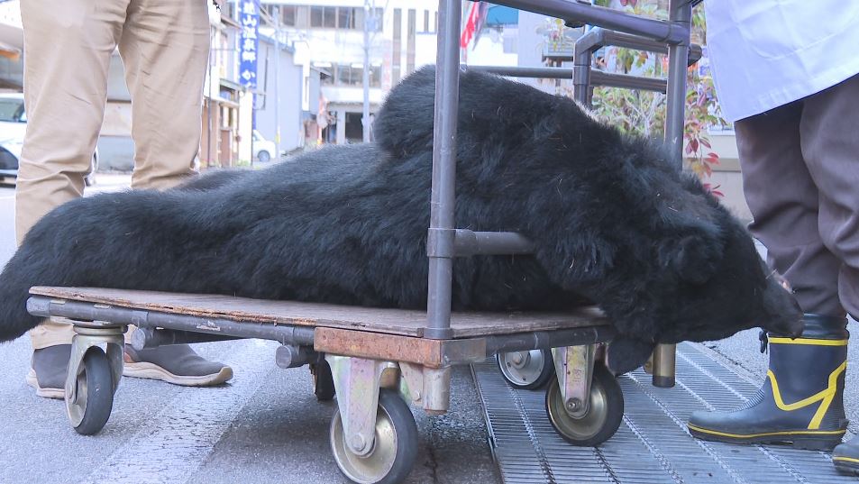 取材した11月24日も店には、持ち込まれたイノシシと一緒にクマが置かれていました。