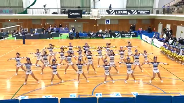 第2セット終了後、見事なパフォーマンスを見せるのはチアリーディングチーム「須坂コルツ」です。