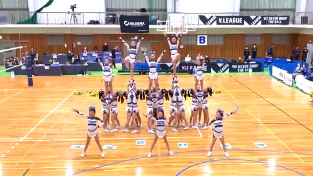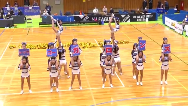 試合は第2セットが終了。いよいよコルツの出番です。息のあった演技で会場の約250人の観客を盛り上げます。
