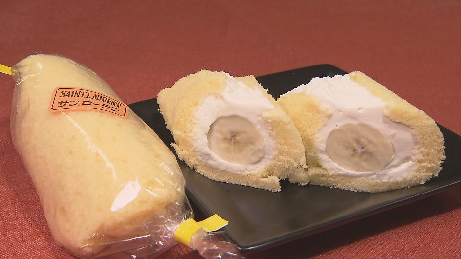 洋菓子とパンの店「サン,ローラン」。こちらのバナナボートは地元産の卵をふんだんに使い、ふわふわの生地が特徴です。