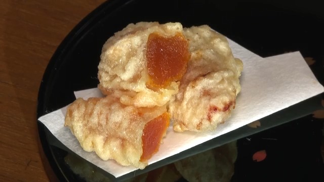 市田柿を使った天ぷらやポテトサラダ、マリネなど