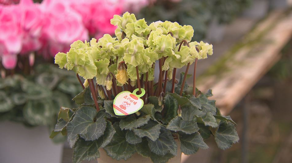 そして、今までにない色を求めて誕生したのが、ライムグリーンのシクラメン「森の妖精」です。「これはシクラメンにない色っていうとこですね」と小松さん。