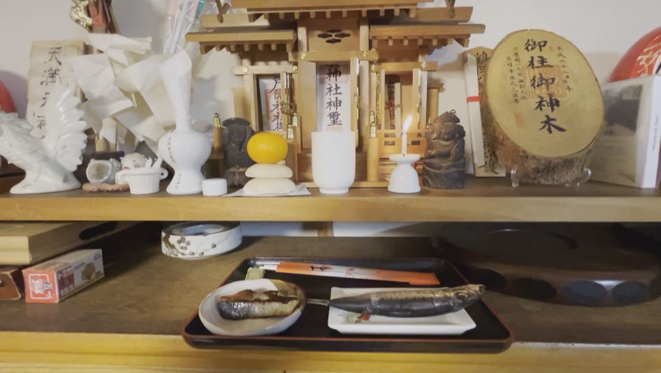 イワシを神棚に供える