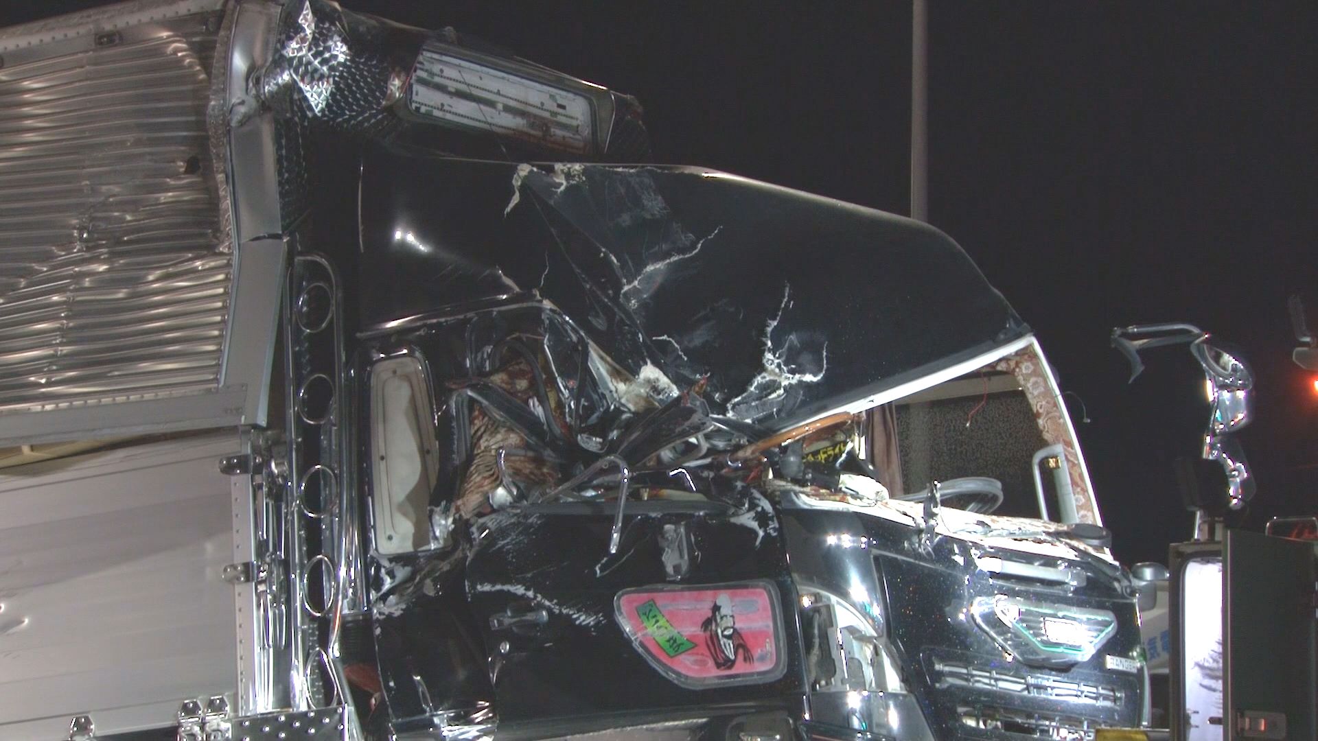 事故車両1月20日夜、長野県塩尻市の国道でトラックが信号機の柱に衝突し、運転していた男性が死亡しました。 20日午後11時ごろ、塩尻市宗賀の国道19号線で中型トラックが道路脇の信号機の柱に衝突して横転する事故がありました。 運転していた男性は病院に搬送されましたが、約4時間後に出血性ショックで死亡しました。 現場の見通しは良く、トラックは木曽方面に向かっていたと見られています。 警察が男性の身元を確認するとともに事故の原因を調べています。