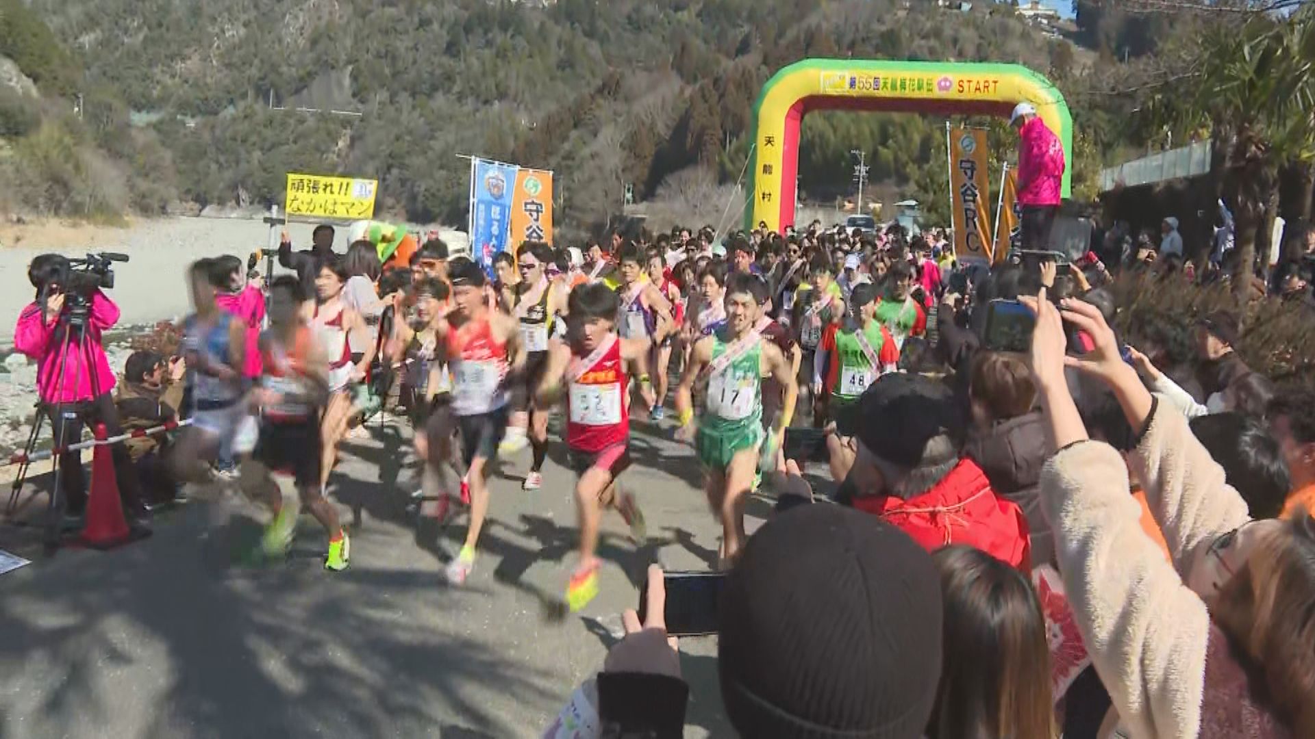 「天龍梅花駅伝」は、愛知・静岡両県と境を接する天龍村の春を告げる大会として毎年開かれていて、今年で55回目を迎えました。